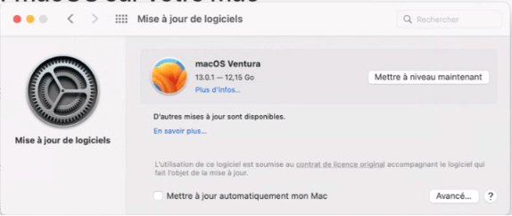 - Si ce n’est pas la dernière version, aller dans les préférences système du Mac puis dans « Mises à jour de logiciels ». Une fenêtre s’ouvre et peut indiquer qu’une mise à jour de macOS est disponible ou que d’autres mises à jour le sont ;